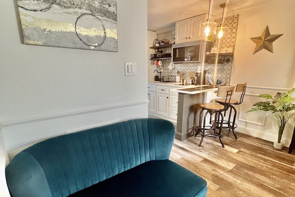 This small studio has a style all of its own. It's part of a unique Spanish Revival Historic property; the studio is one of 4 studios in a 2 story, free-standing building adjacent to the main house. Exclusively repurposed from an old doctor's office to serve as short term rentals. Specifically repurposed with couples' comfort in mind, to offer a o.......read more